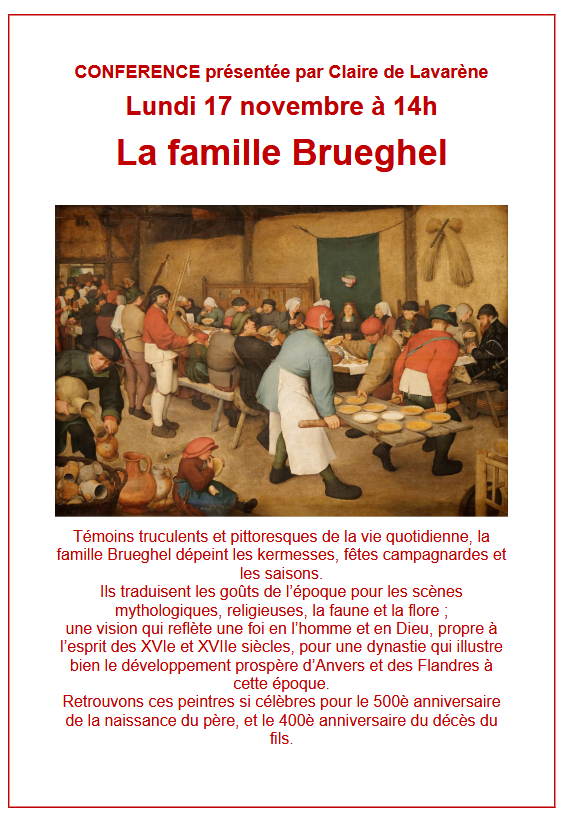 - histoire de l’art « La famille Bruegel » et patchwork lundi 17